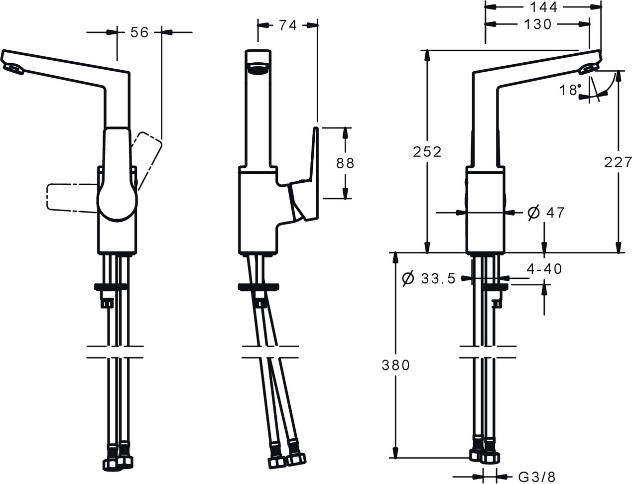 DN 15, Heißwasserversorgung max. 80°C, Arbeitsdruck 0,5-10 bar, Durchfluss bei 3 bar (mit Regler) 6 l/min, Anschlussgröße G3/8, Schwenkbereich 150° (360°), Ausladung 130 mm, Sicherungseinrichtung (EN1717) AA, Geräuschklasse I (ISO 3822), Material Messing, Ø 3,5 classic Steuerpatrone mit keramischen Dichtscheiben zur Wassermengen- und Temperatureinstellung, ohne Zugstangenbohrung, Temperaturbegrenzer, Heißwassersperre einstellbar (im Lieferumfang enthalten), konstante Durchfussleistung unabhängig vom Fließdruck, schwenkbarer Auslauf, Armaturenkörper aus entzinkungsbeständigem Messing (DZR), Rapid-Montagesystem, Hebel mit W+K-Kennzeichnung, Einhandbedienhebel/Griff, Anschluss über fexible Druckschläuche