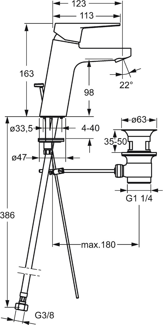 DN 15, Heißwasserversorgungmax. 70°C, Arbeitsdruck 0,5-10 bar, Durchfluss bei 3 bar (mit Regler) 6 l/min, Anschlussgröße G3/8, Ausladung 123 mm, Sicherungseinrichtung (EN1717) AA, Geräuschklasse I (ISO 3822), Material Messing, Ø 3,5 classic Steuerpatrone mit keramischen Dichtscheiben zur Wassermengen- und Temperatureinstellung, Anschluss über fexible Druckschläuche, Temperaturbegrenzer, Heißwassersperre einstellbar (im Lieferumfang enthalten), konstante Durchfussleistung unabhängig vom Fließdruck, feststehender Auslauf, Armaturenkörper aus entzinkungsbeständigem Messing (DZR), Rapid-Montagesystem, Hebel mit W+K-Kennzeichnung, Einhandbedienhebel/Griff, Ablaufgarnitur mit Zugstange