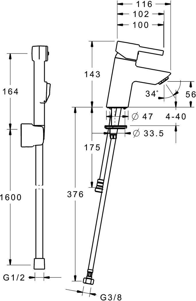 DN 15, Durchflussmenge 9 l/min, Durchfluss (Durchflussbegrenzer) 6 l/min, gemessen bei 3 bar Fließdruck, Heißwasserversorgung max. 80 °C, automatische Rückstellung, Armaturenkörper aus entzinkungsbeständigem Messing (DZR), Rapid-Montagesystem, eigensicher gegen Rückfließen im häuslichen Gebrauch (nach DIN EN 1717), Funktionsbrause, Brausehalter, Brauseschlauch (1600 mm), Hebel mit W+K-Kennzeichnung, Temperaturbegrenzer, Heißwassersperre einstellbar, Anschluss über flexible Druckschläuche G 3/8, Ø 3.5 classic Steuerpatrone mit keramischen Dichtscheiben zur Wassermengen- und Temperatureinstellung, feststehender Auslauf, Cascade Strahlregler