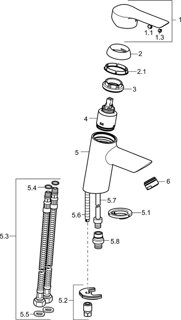 HANSA Waschtisch-Einhebelmischer HANSAVANTIS Style mit Funktionsbrause, ohne Ablaufgarnitur, Ausladung 112mm, Pinhebel, chrom