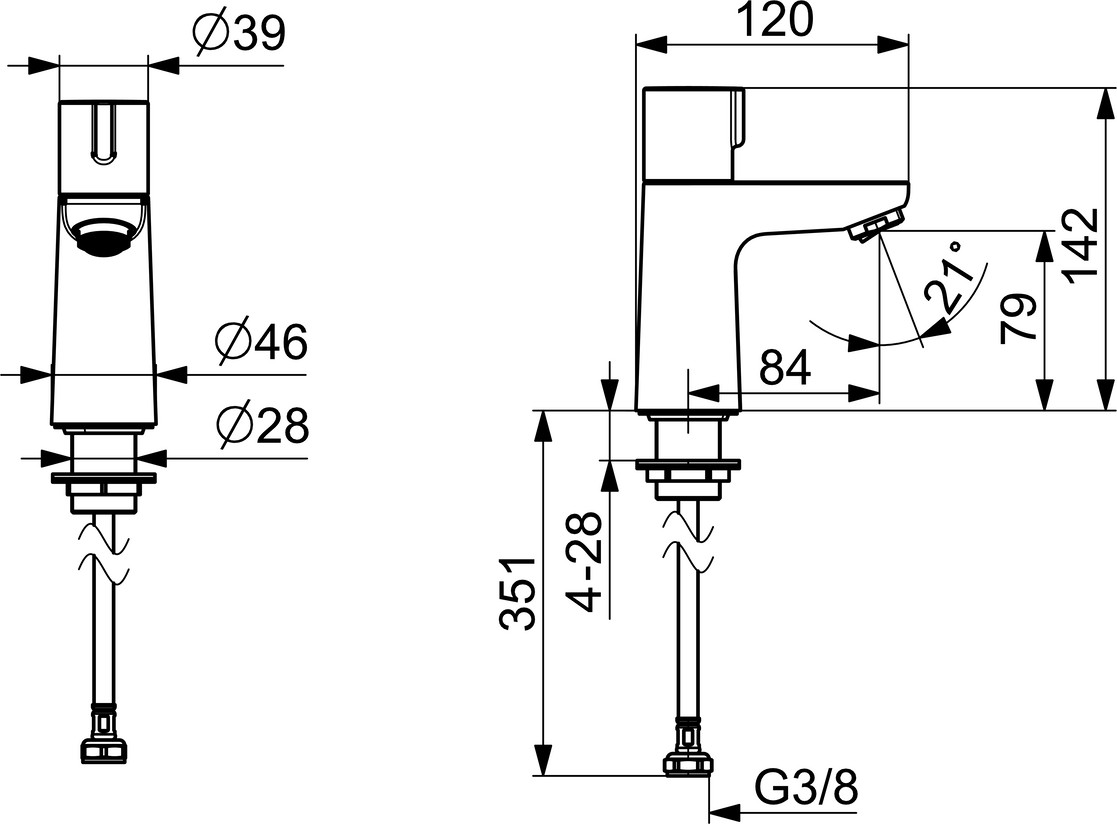 DN 15, Heißwasserversorgung max. 80°C, Arbeitsdruck 0,5-10 bar, Durchfluss bei 3 bar (mit Regler) 6 l/min, Anschlussgröße G3/8, Ausladung 84 mm, Sicherungseinrichtung (EN1717) AA, Geräuschklasse I (ISO 3822), Material Messing, Oberteil mit keramischen Dichtscheiben zur Wassermengeneinstellung für einen Abgang, Einhandbedienhebel/Griff, Anschluss über fexible Druckschläuche, 1 Zuleitung, für Kalt- oder Mischwasser, feststehender Auslauf, gegossen, konstante Durchfussleistung unabhängig vom Fließdruck, schwenkbar, Armaturenkörper aus entzinkungsbeständigem Messing (DZR)