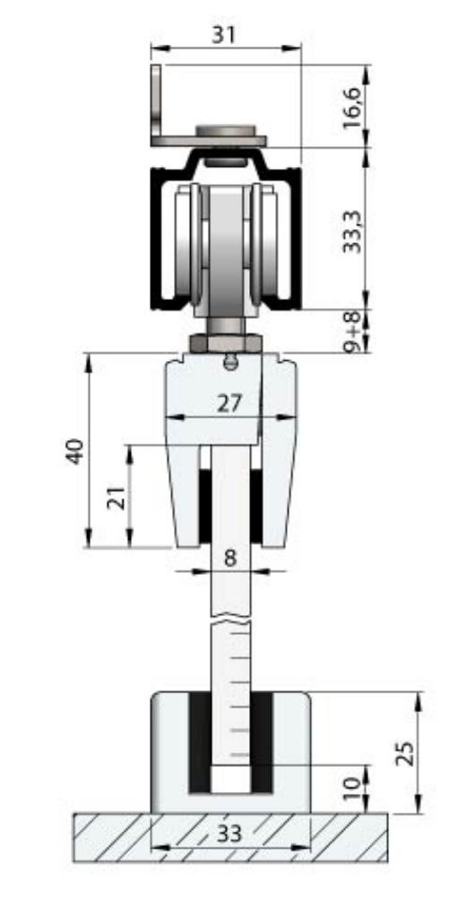 • Für einflügelige Glasschiebetüren bis 80 kg Flügelgewicht und Türstärken von 8 und 10 mm (ESG)