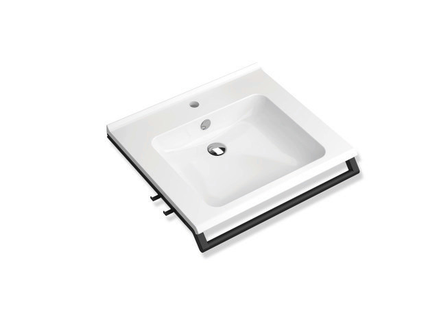 HEWI Mineralguss-Waschtisch-Set 65x58cm, mit Haltegriff 65cm, 2 Haken, weiß, schwarz tiefmatt W49303