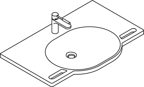 mit Einhebelmischer AQ1.12M10240, mit Ablagefläche und ovalem Becken, ohne Überlauf, mit porenfreier Oberfläche, integrierte Haltemöglichkeit, als Handtuchhalter nutzbar, unterfahrbar nach DIN 18040 und ÖNORM B 1600/1601, belastbar nach DIN EN 14688, für Stockschraubenbefestigung