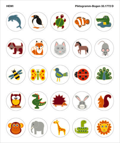 HEWI Piktogramm-Bogen Serie Tiere, selbstklebend, d= 40mm