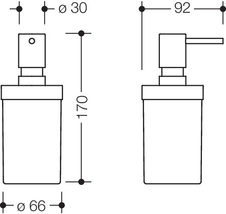 mit einer Pumpe aus Metall, verchromt, passend zu Halter 800.00.10090, aus Polyamid, oberer Durchmesser 69 mm, 170 mm hoch mit Pumpe