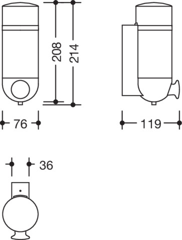 Dosierung der Seife durch große Drucktaste auf der Vorderseite (ermöglicht Einhandbedienung), diebstahlgeschützt durch verdeckte Verschraubung, Behälterdeckel kann verriegelt werden, mit Wandsockel zur Abdeckung von Bohrungen, 70 x 208 x 122 mm, Behälter ø 75 mm, Behälter und Deckel aus matt weißem transparentem Kunststoff, Füllmenge 500 ml, nicht für Desinfektionsmittel geeignet, aus Polyamid, Drucktaste in ausgewählten Farben