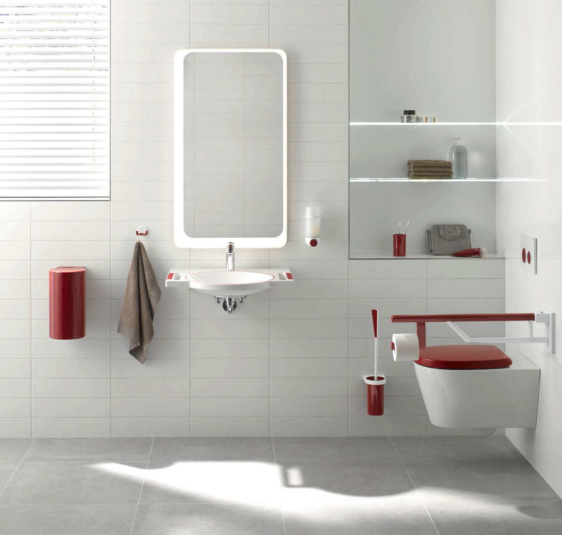 HEWI Seifenspender System 800 K Sockel/Halterung signalweiß, rubinrot