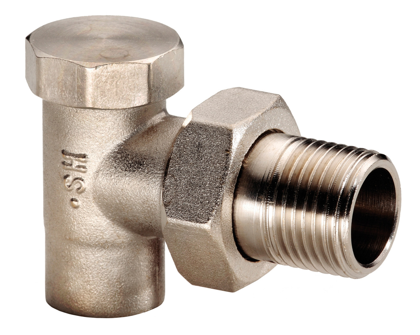 HS Radiatorverschraubung UNIVERS 1/2" x 15 mm, Eckform, absperrbar, lötbar, vernickelt
