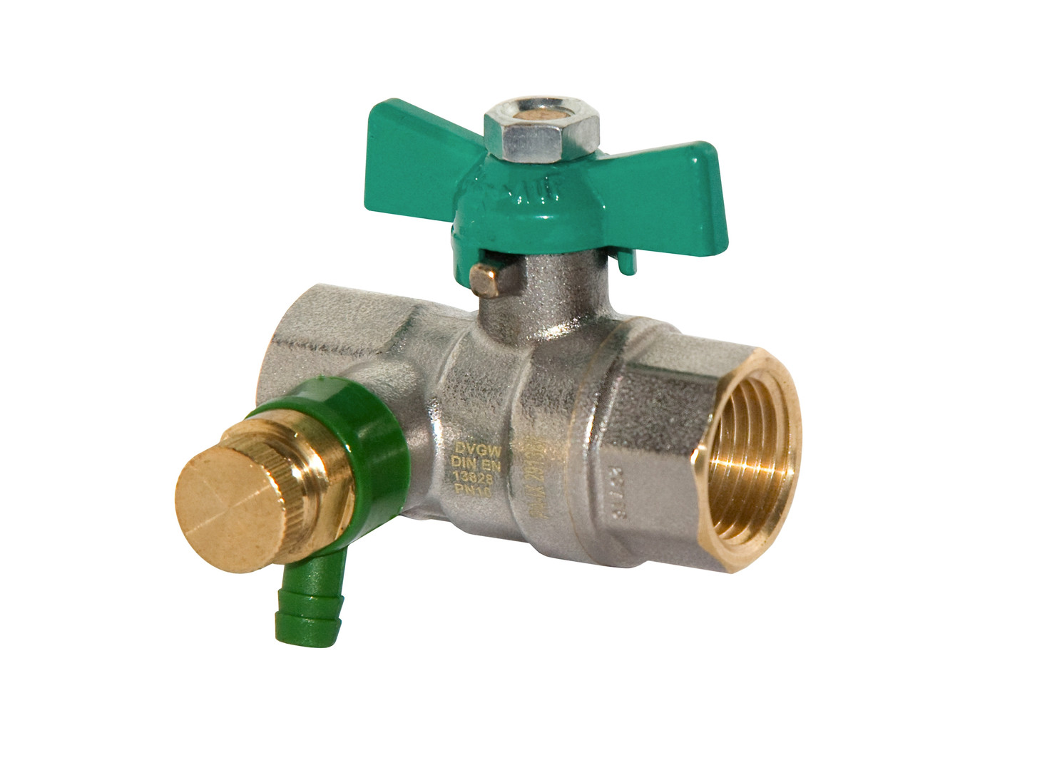 HS Trinkwasser-Kugelhahn UNIWATER CHROM 1498 1", Messing verchromt, Flügelgriff grün W538384
