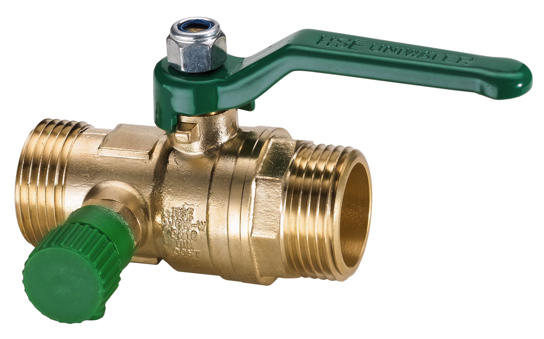 HS Trinkwasser-System-Kugelhahn UNIWATER 1437 DN 20 x 1", Messing, Stahlhebel grün, mit Entleerung W538263