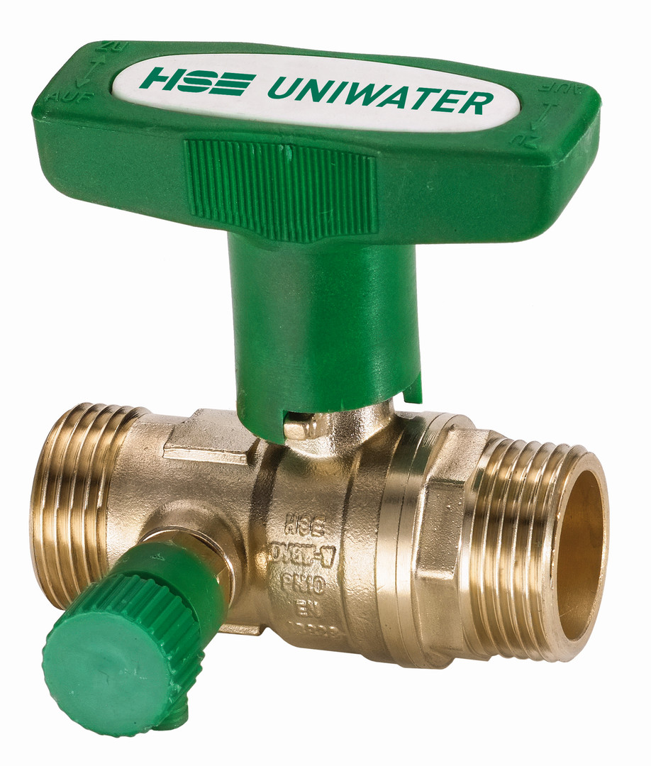 HS Trinkwasser-System-Kugelhahn UNIWATER 1438 DN 15 x 3/4", Messing, ISO-T Griff grün, mit Entleerung W538268