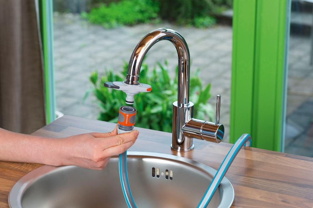 • Der Hahnverbinder passt mit den im Set enthaltenen Adaptern an viele moderne Wasserhähne