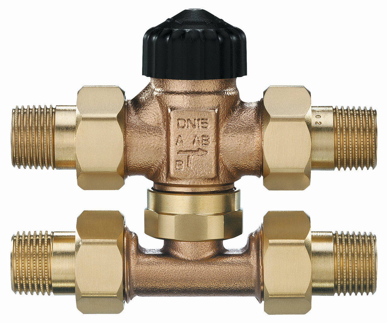 Heimeier Dreiwege-Mischventil DN 15, flachdichtend, mit T-Stück, Rotguss