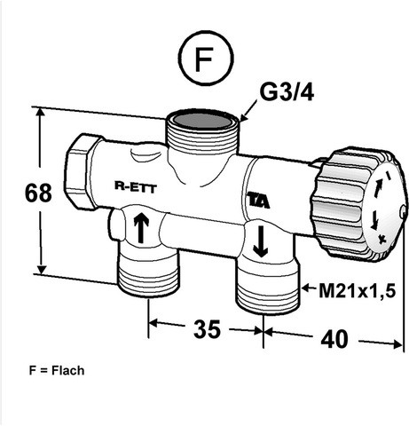Heimeier Einrohrventil Fellingsbro M68cc35 G 3/4 AG FPL, M 21 x 1,5, für unteren Einpunktanschluss W805380