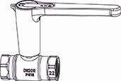 für Trinkwasseranlage, Absperren, demontierbarer Bedienungsknebel aus Metall, Knebelanschlag verdeckt, DN 15-50, PN 16, zulässige Betriebstemperatur TB: -10-120 °C, Gehäuse aus korrosionsbeständigem Rotguss, Kugel aus Edelstahl mit glattem Durchgang, Wartungsfreie Spindelabdichtung durch zwei O-Ringe aus EPDM, Kugelabdichtung aus reinem PTFE, Wärmedämmschalen bestehend aus zwei ineinander fassenden Halbschalen, Stellantriebe DN 10-32 geeignet für M106 Stellantrieb