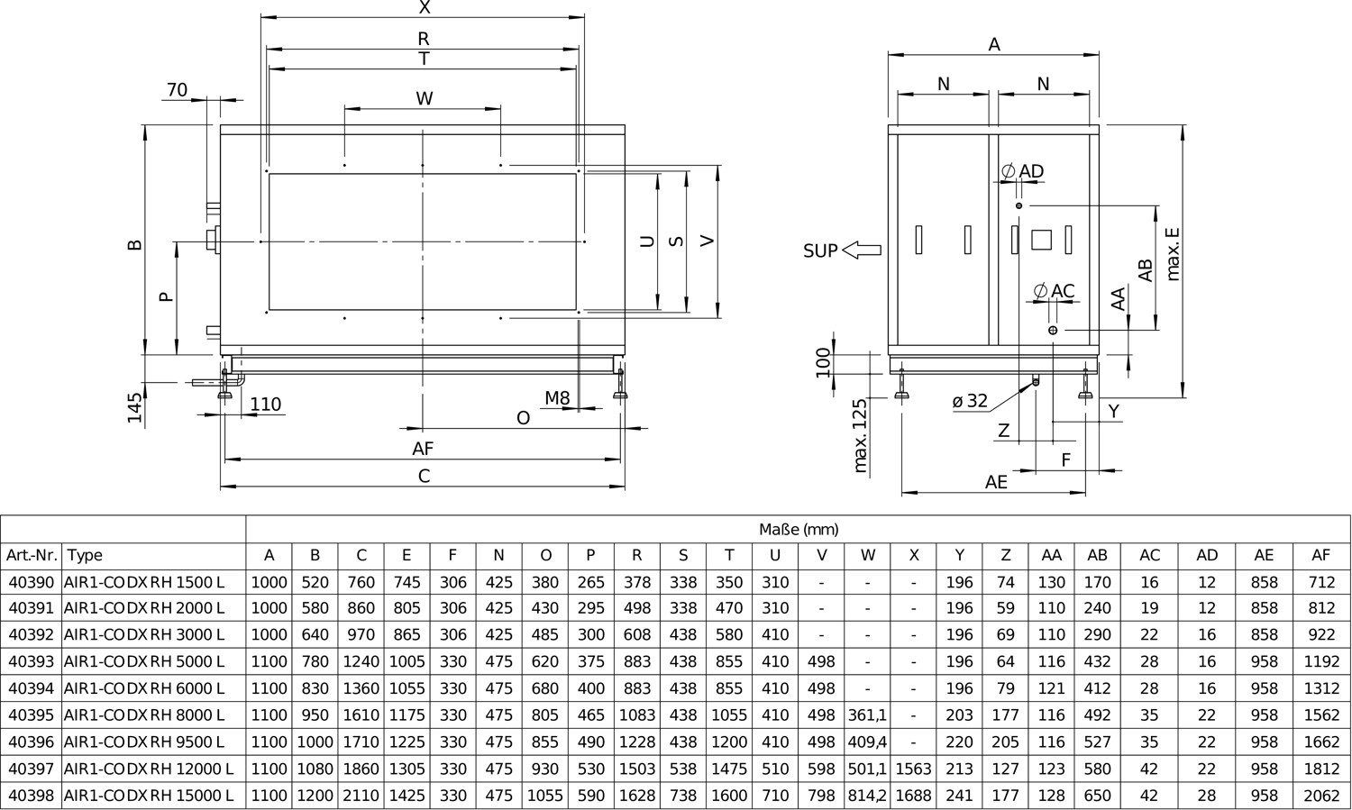 Helios AIR1-CO DX RH 1500 L Change-over-Register DX zu AIR1 RH 1500 linke Installation