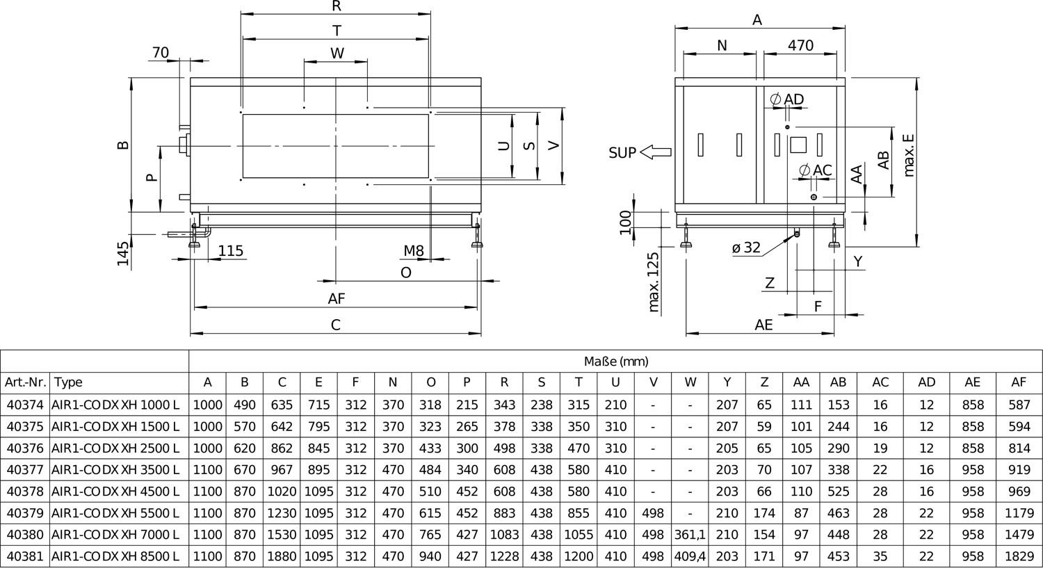 Helios AIR1-CO DX XH 4500 L Change-over-Register DX zu AIR1 XH 4500 linke Installation