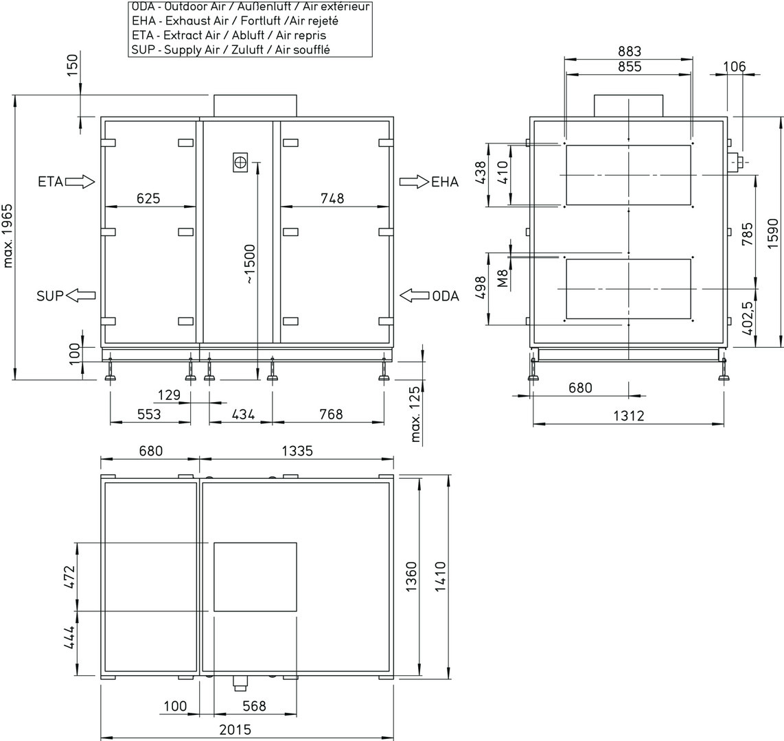 Helios AIR1 RH 6000 Lüftungsgerät mit WRG Rotations-WT Stehend, Horizontal