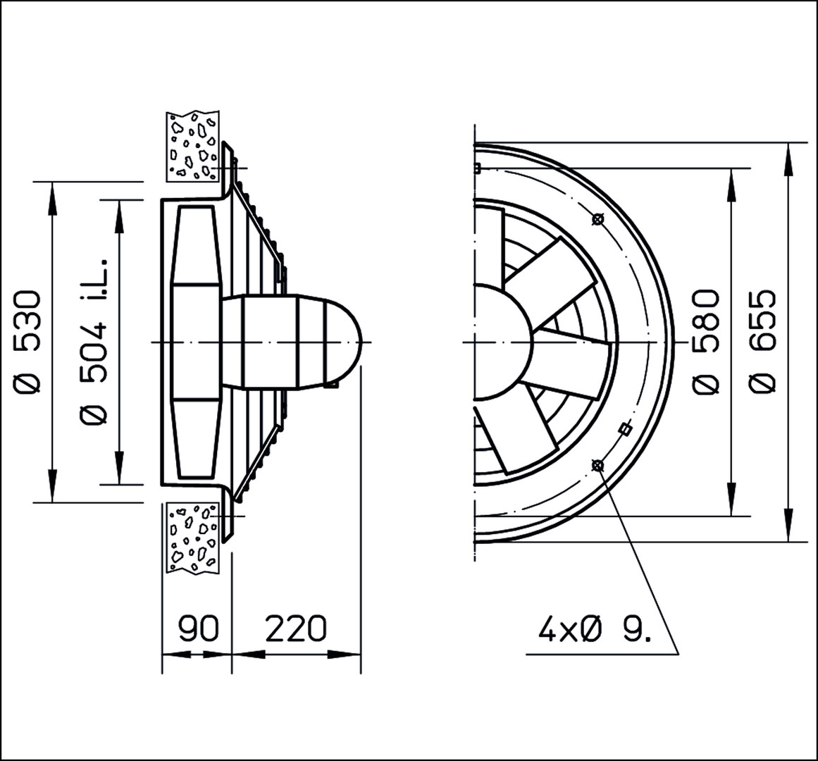 Gehäuse aus verzinktem Stahlblech mit zusätzlicher Zweischicht-Lackierung in papyrusweiß, Laufrad mit profilierten Schaufeln aus Kunststoff /dynamisch ausgewuchtet, geschlossenes Aluminiumdruckguss-Gehäuse, Antrieb kugelgelagert (wartungs- und funkstörungsfrei, Wicklung mit Feuchtschutzimprägnierung, mit Thermokanten ausgerüstet, serienmäßiger Klemmkasten (Schutzart IP 54/55) an Motorrückseite, Schutzgitter aus pulverbeschichtetem Stahl, Wendebetrieb mittels Wendeschalter reversierbar, Einbau in jeder Lage möglich (jedoch einsatzabhängig, evtl. Kondenswasserbohrungen beachten)