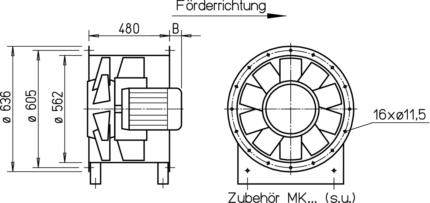 Helios Axial-Mitteldruckventilator AMD 560/4/2 2 /8 kW, 400 V, 50 Hz, 3-PH, 2-tourig