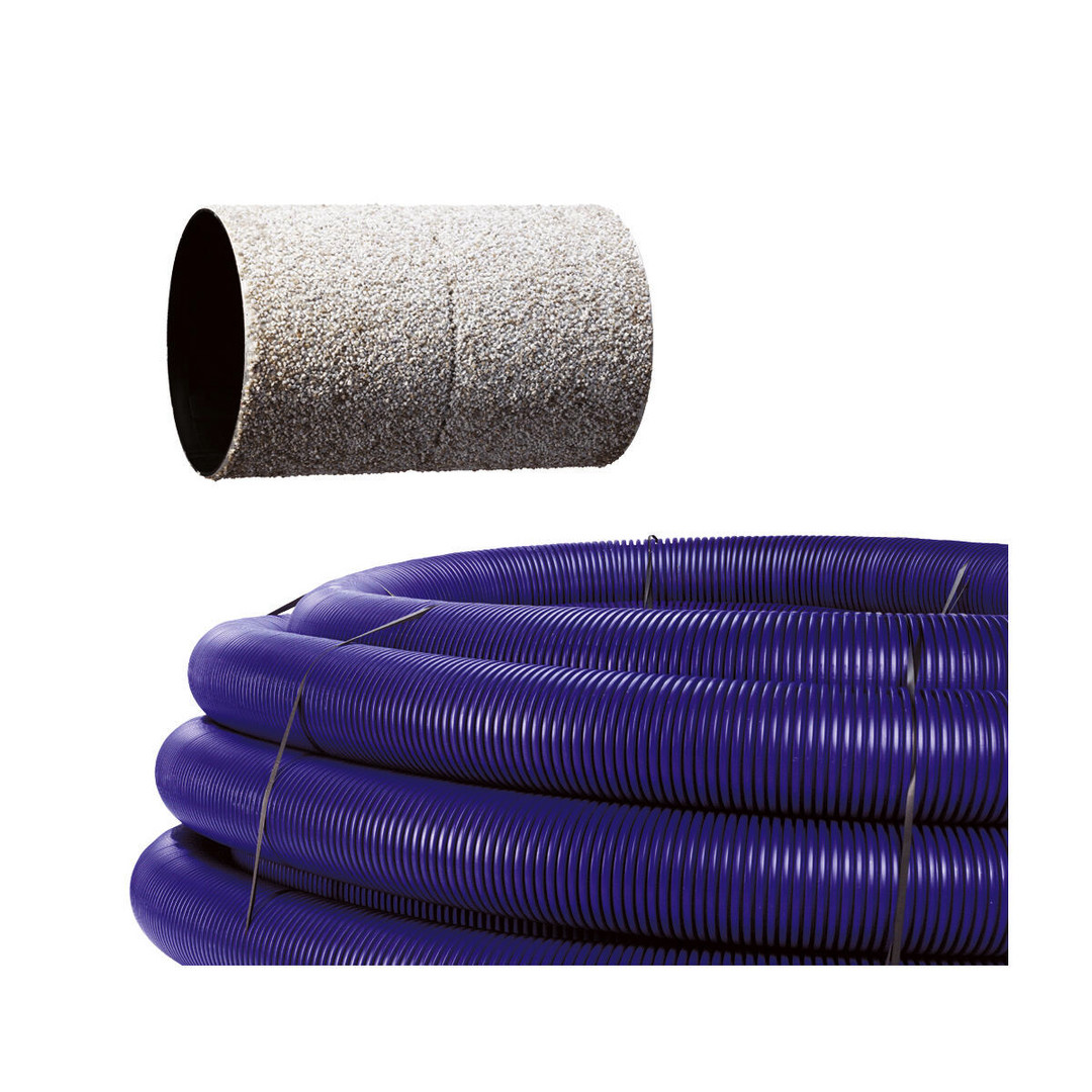 außen gewelltes und innen glattwandiges Erdkollektorrohr mit geringem Luftwiderstand, Außen-Ø 200 mm, coextrudiertes Verbundrohr aus physiologisch und toxologisch unbedenklichem Polyethylen (PE-HD), Innenwandung antibakteriell und und antistatisch, speziell als Lüftungsrohr für die Erdverlegung, erfüllt DIN 1946-6 (VDI 6022), 100 % geruchsneutral, Mauerdurchführung aus Polypropylen (besandet)