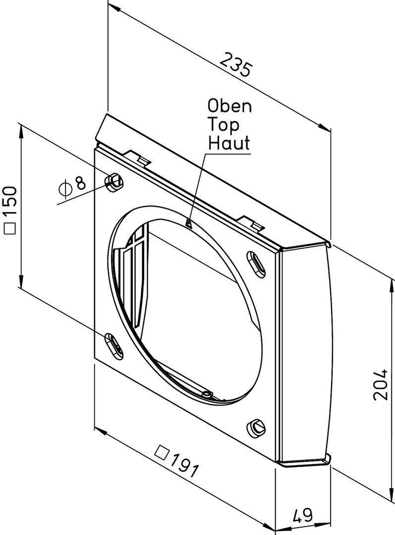 für den Anschluss an Außen-/Fortluftleitungen, universell einsetzbar für horizontalen oder vertikalen Einbau, Positionierung Fortlaufstutzen rechts/links oder oben möglich