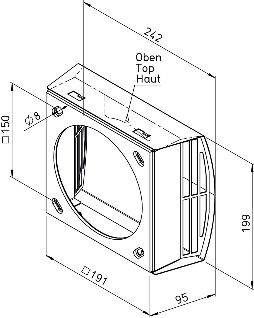 für den Anschluss an Außen-/Fortluftleitungen, universell einsetzbar für horizontalen oder vertikalen Einbau, Positionierung Fortlaufstutzen rechts/links oder oben möglich