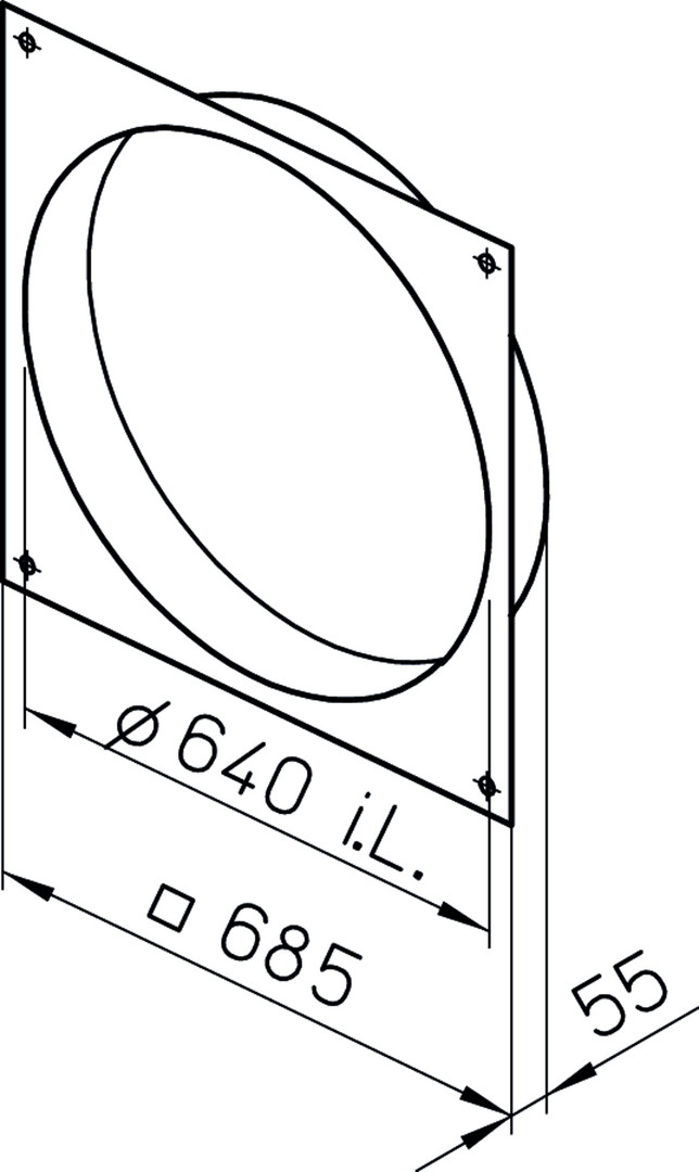 zu quadratischen Verschlussklappen für Übergang auf rund, hiermit können die Verschlussklappen der Baureihen VK/RVK/EVK und RAG direkt auf runde Rohre oder Ventilatorstutzen aufgesetzt werden, bei der Montage entsprechen die 4 Bohrungen in den Ecken den Befestigungspunkten der Verschlussklappen, der runde Stutzen ist auf das Ventilatorgehäuse aufschiebbar und mittels Schneidschrauben zu befestigen