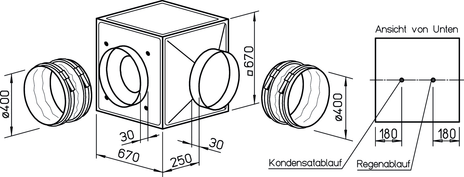 Helios GigaBox Radialventilator GBD 400/4/4 T120, 3 PH, regelbar, mit Formstück/Manschetten