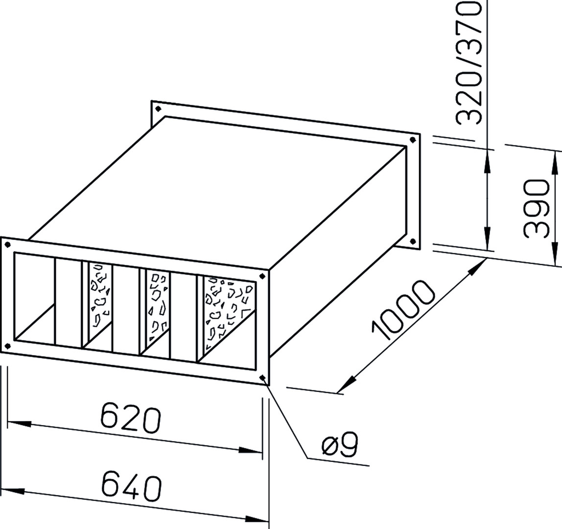 Helios Kanal-Schalldämpfer KSD 60/30-35, verzinktes Stahlblech, Ausführung Einbau