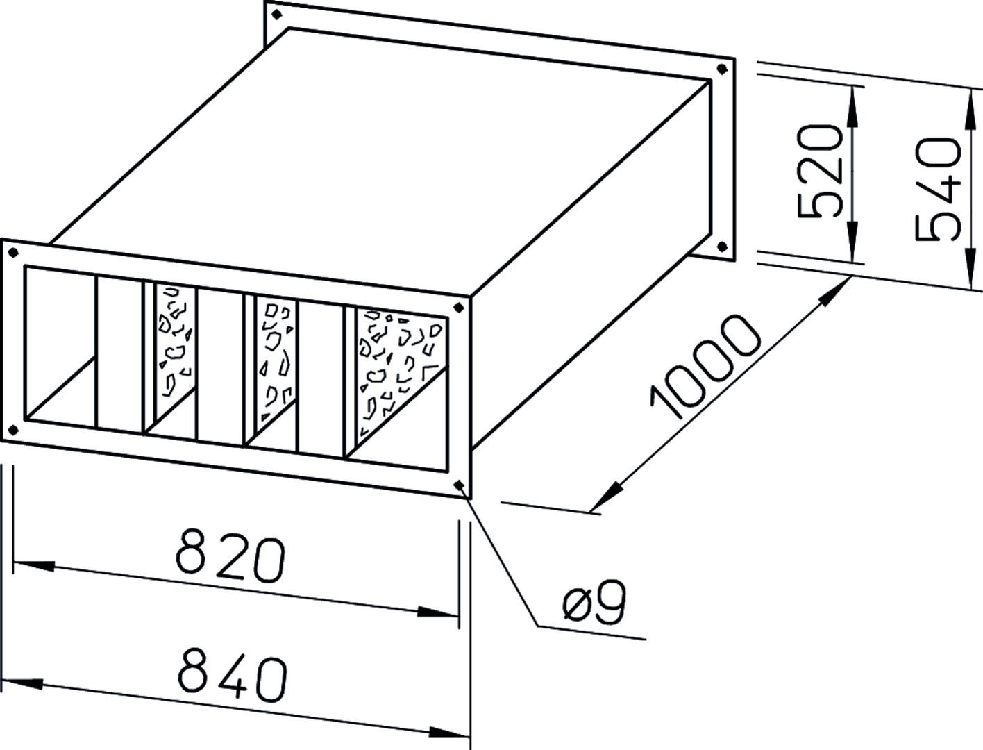 Helios Kanal-Schalldämpfer KSD 40/20, verzinktes Stahlblech, Ausführung Einbau W846412