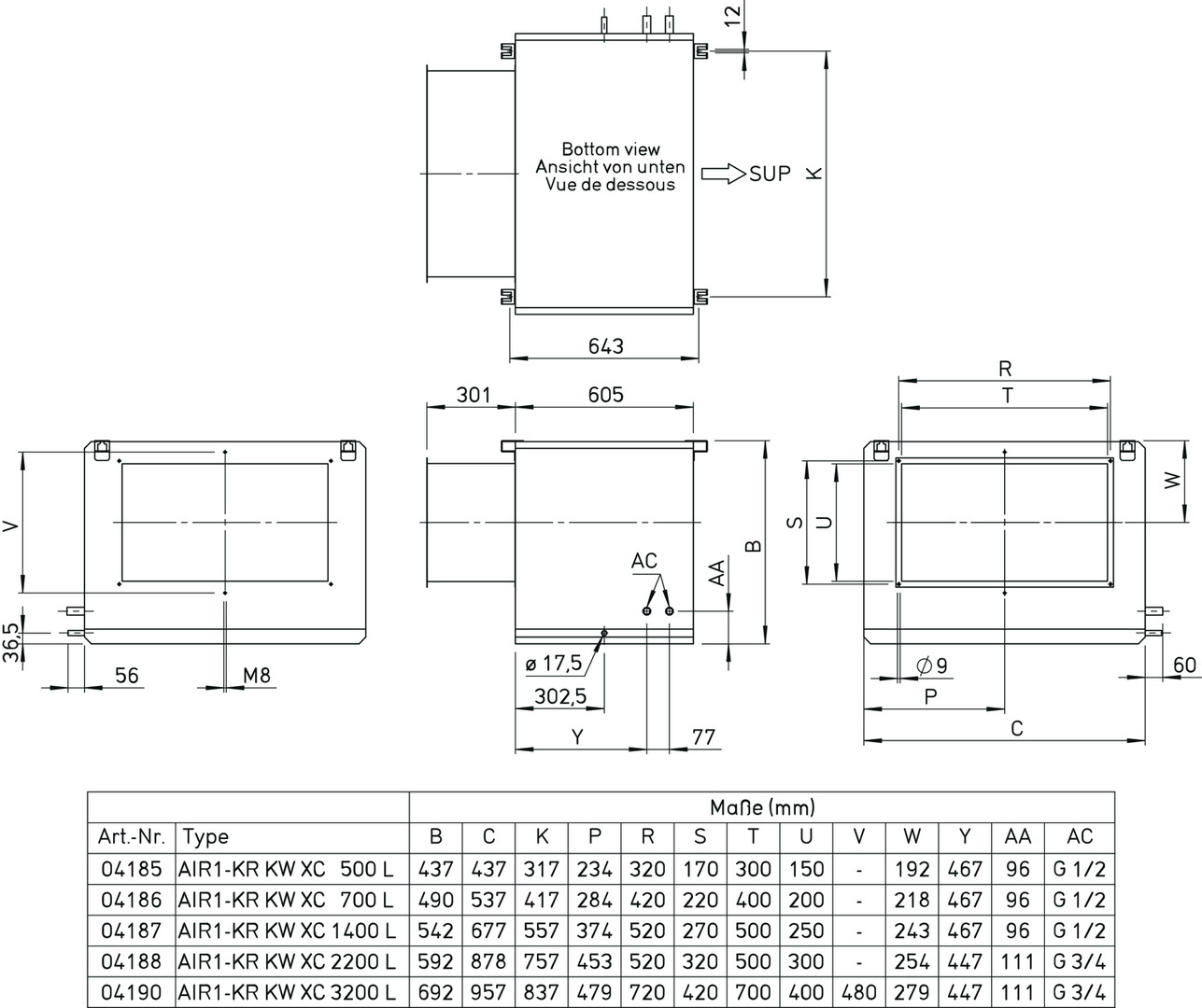 für bedarfsgerechten Temperierung (Kühlung) der Zuluft, für Montage direkt am Zuluftkanal des Lüftungsgerätes einschließlich Befestigungsmaterial, Kühlelement bestehen aus Kupferrohren mit aufgepressten Aluminiumlamellen, Kondensatwanne aus Edelstahl mit Kondensatablaufstutzen, Gehäuse in stabiler Paneelbauweise aus Aluzink-Blech, allseitig isoliert mit 50 mm Mineralwolle zur Minimierung von Wärmeverlusten, Gehäuse außen korrosionsbeständig beschichtet, RAL 7047, Korrosion Klasse C4, innen verzinkt. Glatte Innenoberfläche gem. den Vorgaben der VDI 6022 zur einfachen Reinigung, Revisionsöffnung für einfachen Zugang und optimaler Reinigungs- und Wartungsmöglichkeit, Für Innenaufstellung geeignet, Anschlussmaß Vorlauf/Rücklauf 1/2", Kondensatanschluss 17,5 mm, Kanalmaß 300 x 150 mm, Flüssigkeitsinhalt 1,2 l, 806 x 437 x 437 (L x B x H) mm