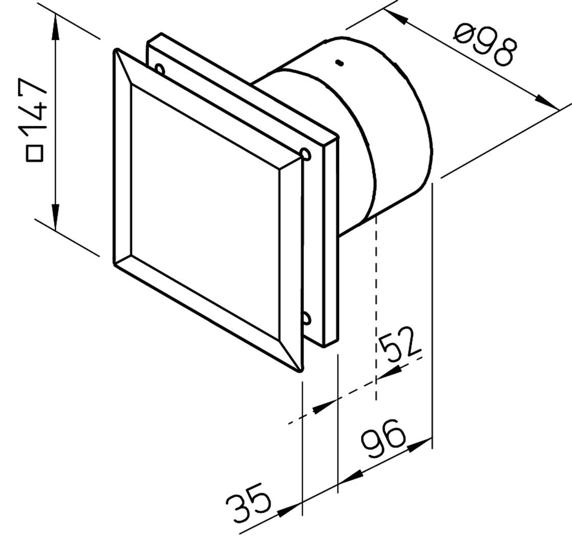 für universellen Einsatz in Bad, Dusche, WC und anderen kleinen Räumen, serienmäßig mit 2 Leistungsstufen und dicht schließender Rückluftsperrklappe ausgestattet, die geschlossene Fassade vermeidet den Einblick in die Ventilatorschmutzzone vollständig, niedriger Geräuschpegel, Kugellager und Motor sind auf Dauerbelastung sowie konstante Leistung und lebenslange Funktionssicherheit ausgelegt, Motor mit thermischem Überlastungsschutz (wartungs- und funkstörungsfrei), im Bereich 1 von Nassräumen gemäß DIN VDE 0100-701 einsetzbar, elektrische Zuleitung wahlweise auf- oder unter Putz einführbar, Schnellmontage durch schraubenlose Anschlussklemmen, 230 V/50 Hz, Schalldruckpegel in 3 m (bei manuellem Betrieb) 30/25 dB(A), Leistungsaufnahme 9/5 W, Nennstrom 0,06/0,04 A