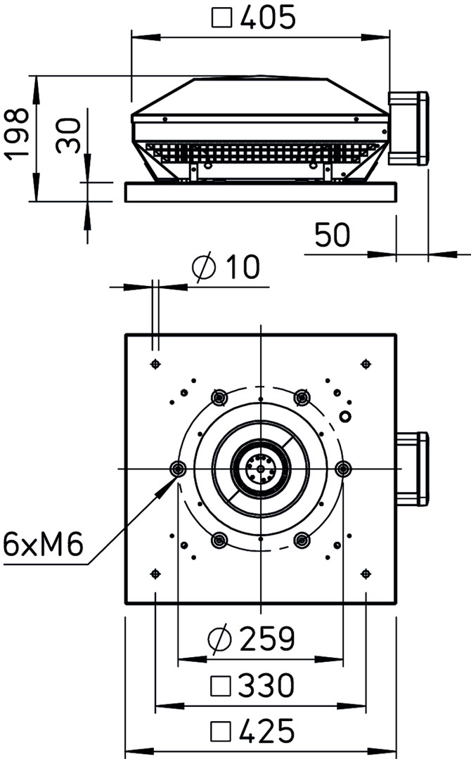 Helios RDW 200/2 Radial-Dachventilator, 1-PH horizontal, 230 V, 2-polig