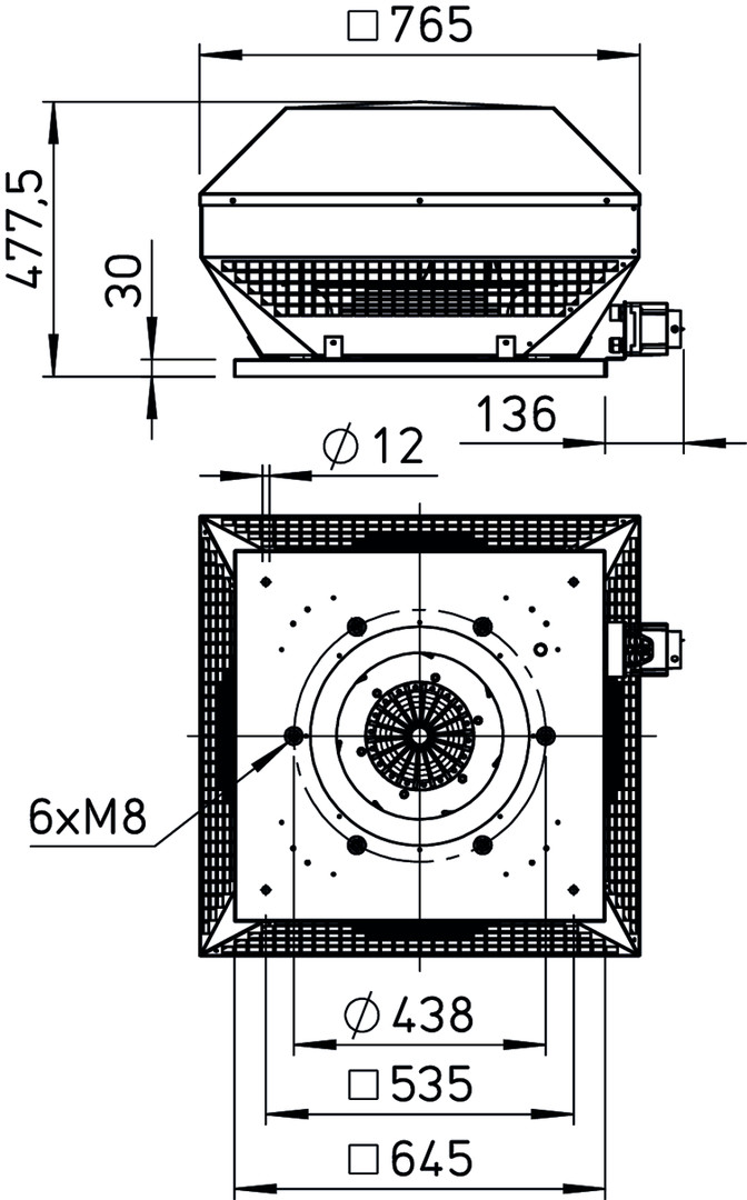 Helios RDW 400/4 Radial-Dachventilator, 1-PH horizontal, 230 V, 4-polig