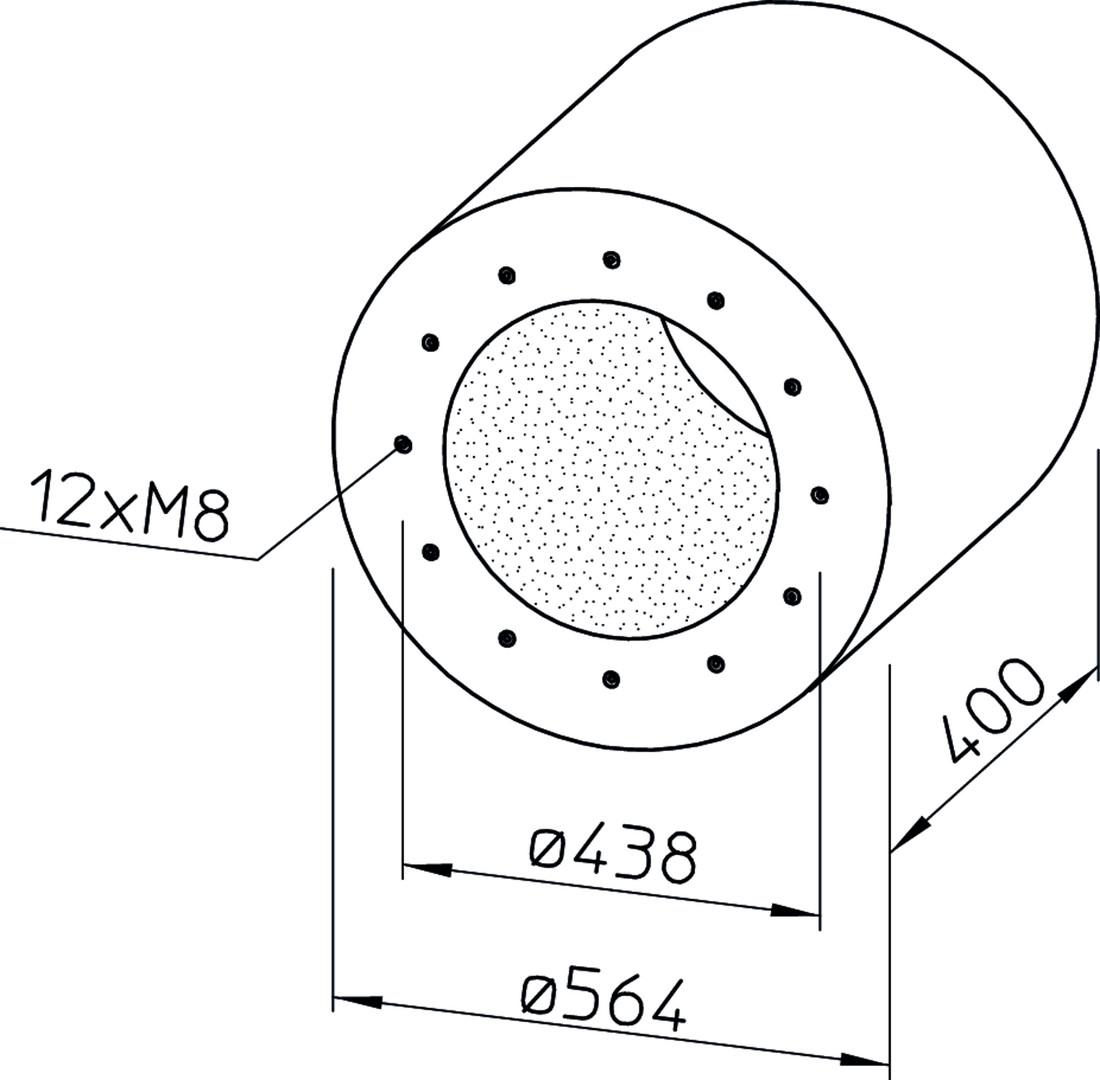 Auskleidung mit Mineralwolle (strömungsseitig mit einem Vlies gegen Abrieb ausgerüstet), Maße und Befestigungslochkreis aller Größen sind auf die Ventilatoren- Normdurchmesser (R 20) abgestimmt, Befestigungsbohrungen entsprechen DIN 24155-Bl. 2, für größere Einfügungsdämmungen können mehrere Schalldämpfer mit gleichem Durchmesser hintereinander angeordnet werden