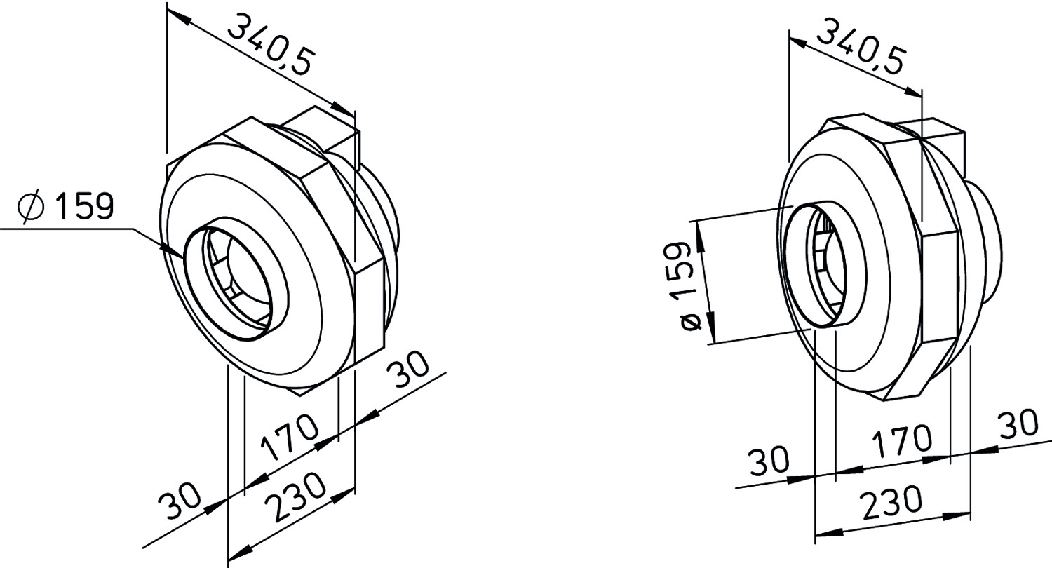 Helios Rohrventilator RRK 160, radial, 230 V, 50 Hz, 1 PH