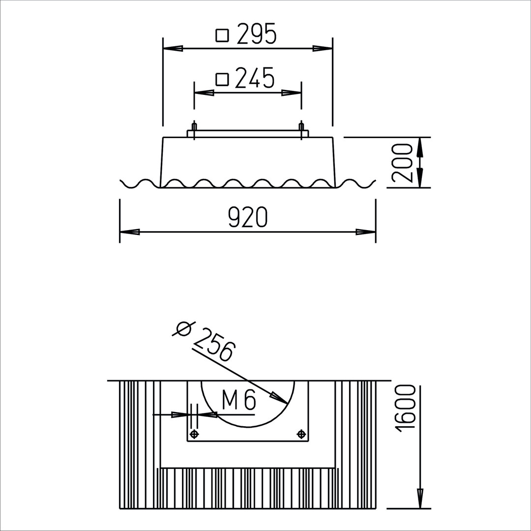 zum Aufsetzen von Dachventilatoren und Lüftungshauben auf Welldächer, witterungsbeständige und korrosionsfreie Konstruktion aus glasfaserverstärktem Polyester mit geringem Eigengewicht, keine Bruchgefahr beim Transport und auf der Baustelle, niedriger Wärmedurchgangswert, Wellenabstand 177 mm (Profil Nr. 5), Einsatz senkt Kosten bei Planung, Ausführung und Montage auf ein Minimum, Regenablaufrinnen an vorderer und hinterer Kehle zwischen quadratischem Sockel und Wellplatte ermöglichen eine Montage der Welldachplatte unabhängig von der Deckrichtung, Schrauben/Scheiben und Profilgummi für Befestigung und Abdichtung der Ventilator-Grundplatte im Lieferumfang enthalten