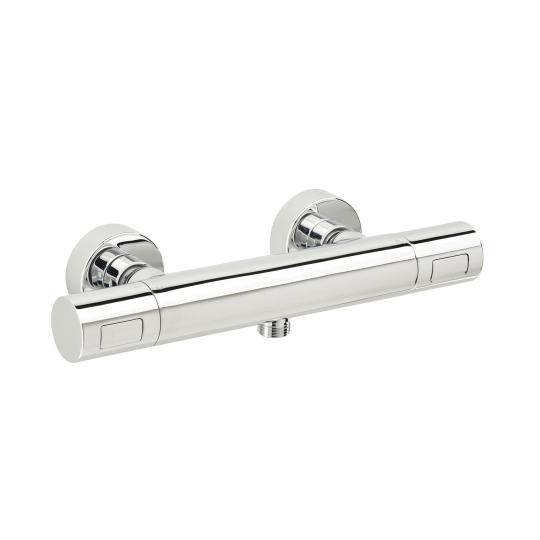 CoolBody Armaturenkörper, LOGIC-EasyClean-Thermoelement, Heißwassersperre 38 °C, Schnellschluss-Keramikventil 90°, Brauseanschluss 1/2", schraubbare Wandrosetten, eigensicher gegen Rückfließen
