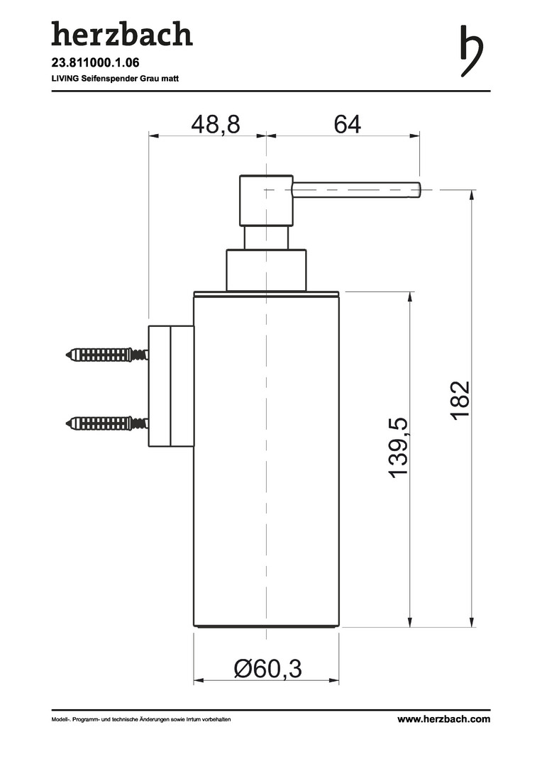 Herzbach Seifenspender Living Wandmontage, grau matt