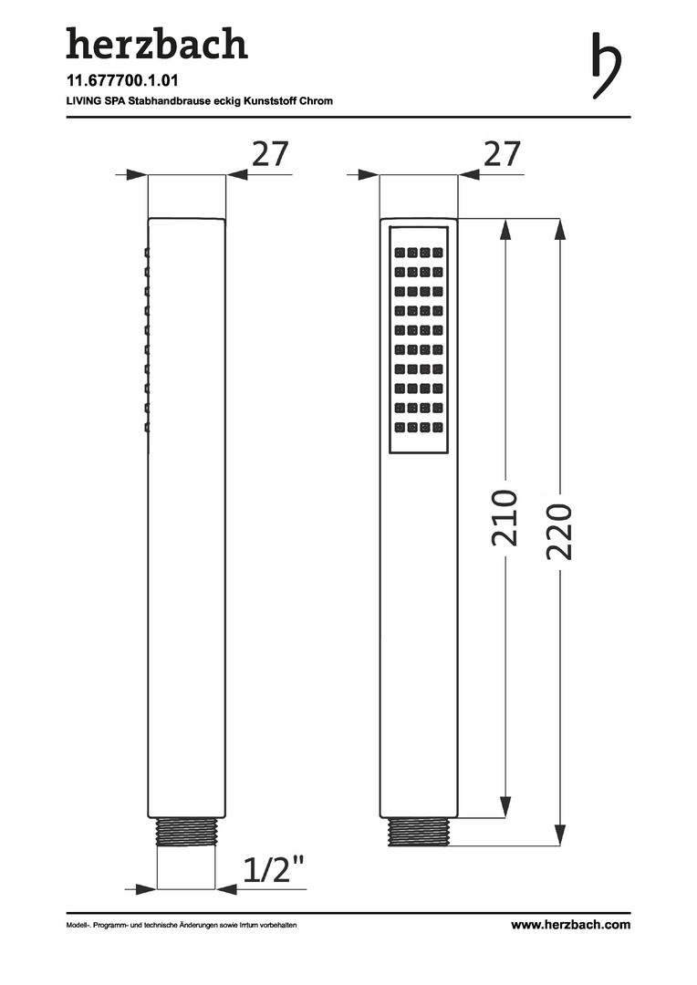 Herzbach Stabhandbrause Living Spa square chrom, Kunststoff