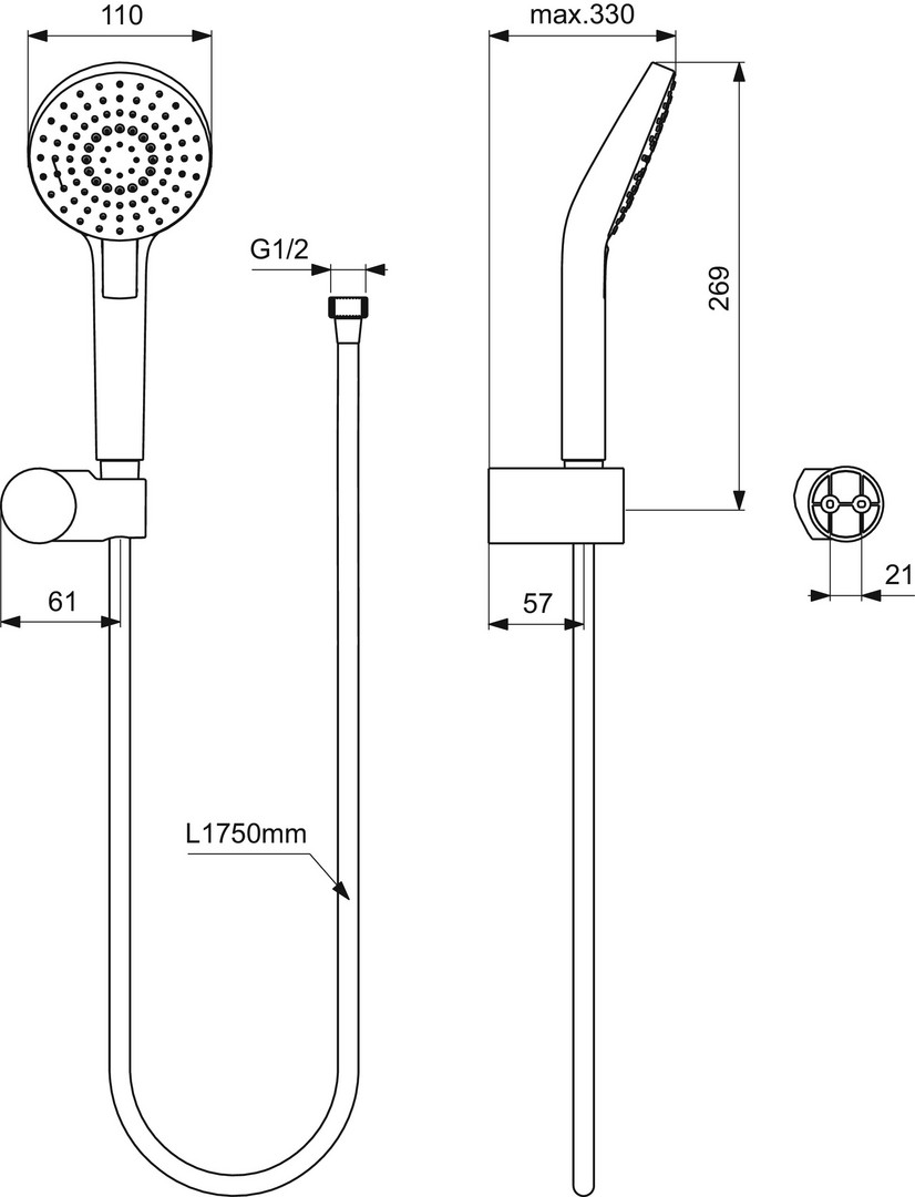 Armaturen-Paket bestehend aus A7296.. - Brausethermostat Unterputz Bausatz 2 für Fertigmontage, zwei Entnahmestellen, Rückflussverhinderer, Unterputz-Bausatz 1 Easy-Box zur Montage benötigt (A1000NU - separat erhältlich), Griffe aus Metall, Öffnen/Schließen per Knopfdruck, Volumenkontrolle durch Drehen (Navigo), gleichzeitiger Betrieb beider Kanäle möglich, Rosette Ø 157 mm, Thermostatkartusche mit Wachsdehnstoffelement, Heißwassertemperaturbegrenzer, Temperatursperre 40 °C, DICHT-FIX System separate Abdichtung jeder Öffnung für optimalen Schutz des Bauwerks gegen Feuchtigkeit und Wasser, Geräuschverhalten Gruppe 1, für eine Verwendung als Badearmatur ist eine separater Rohrtrenner erforderlich, Gewicht 2,011 kg, A1000.. - Unterputz-Bausatz 1 Easy-Box für Unterputz-Einhebelmischer und Thermostate (mit Navigo) Bausatz 2, Wandeinbau, Vormontage im Rohbau, mit Putzschablone und Spülblock, Anschlüsse G1/2, DZR entzinkungsbeständig, Einbautiefe 73-95 mm, Höhenversteller 5-40 mm, Geräuschverhalten Gruppe 1, Gewicht: 0,986 kg, BC808.. - Wandanschlussbogen Unterputz, Rückflussverhinderer, DVGW-eigensicher, Brauseschlauchanschluss G1/2, Wandanschluss G1/2, Gewicht 0,306 kg, B2618.. - Handbrause-Set, Evo Handbrause, 3-Funktion, Strahlarten Regen, Massage und sanfter Regen, Navigo Druckknopfumschaltung, EasyClean, Anschluss G1/2, schwenkbarer Brausehalter, Brauseschlauch Idealflex 1750 mm, Anschluss G1/2, Gewicht 0,625 kg, B0384.. - Regenbrause, Ultra Slim, Ø 250 mm, Kugelgelenk, EasyClean, Anschluss G1/2, Gewicht 1,195 kg, B9444.. - Wandanschluss, Anschluss G1/2