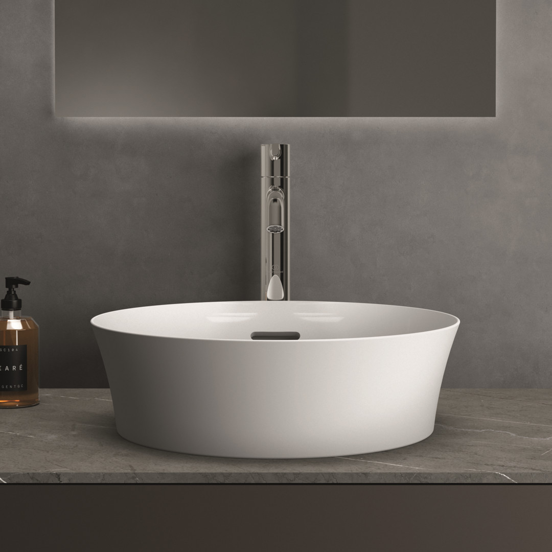 aus Diamatec, Überlauf geschlitzt, Befestigungsart Aufsatzmontage, mit Ausschnittschablone, mit Befestigung (D570967), Norm DIN EN 14688 CL 25, DIN EN 31
