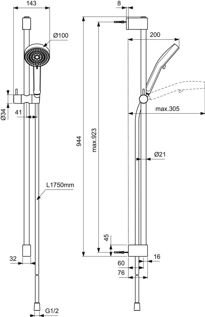 | Länge der Duschstange | 944 mm |