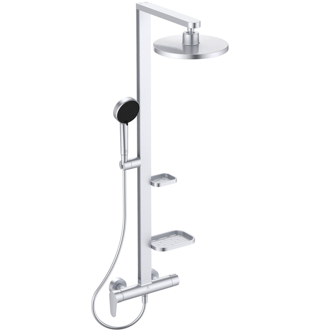 Ideal-Standard Duschsystem Ceraflow Alu+ mit Einhebel-Brausearmatur, 2 Ablagen, Kopfbrause rund, silver W319286