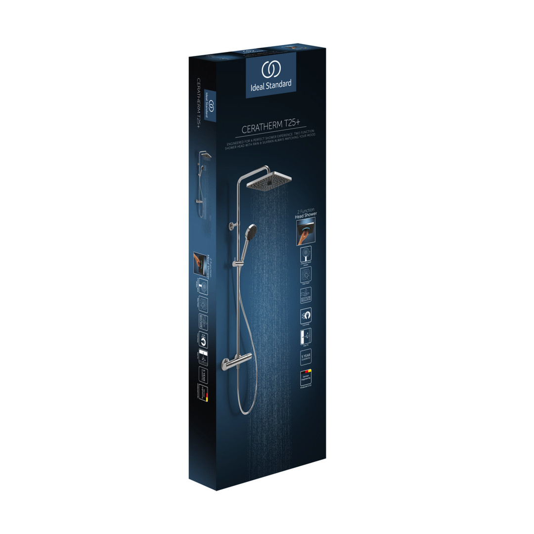Ideal-Standard Duschsystem Ceratherm T 25+ mit Brausethermostat, 2F-Handbrause, Kopfbrause eckig, chrom