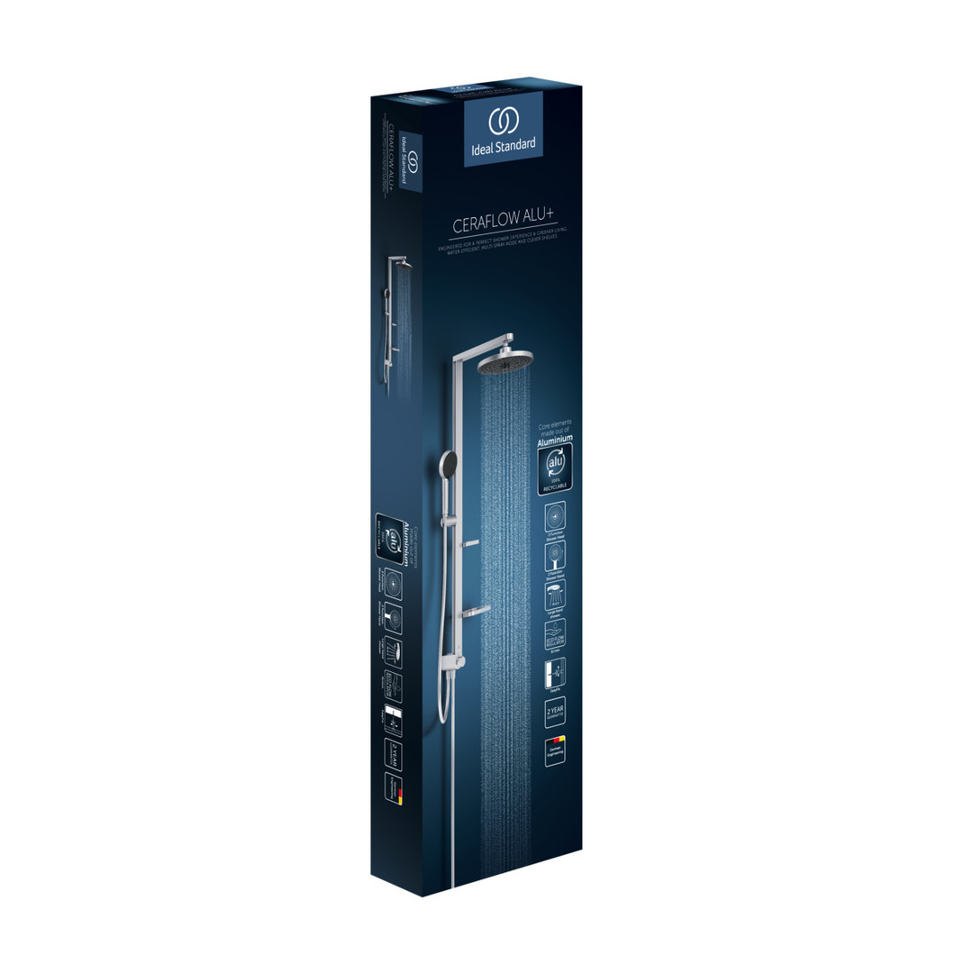 Ideal-Standard Duschsystem Ceratwist Alu+ ohne Armatur, 2F-Handbrause, 2 Ablagen, Kopfbrause rund, silver