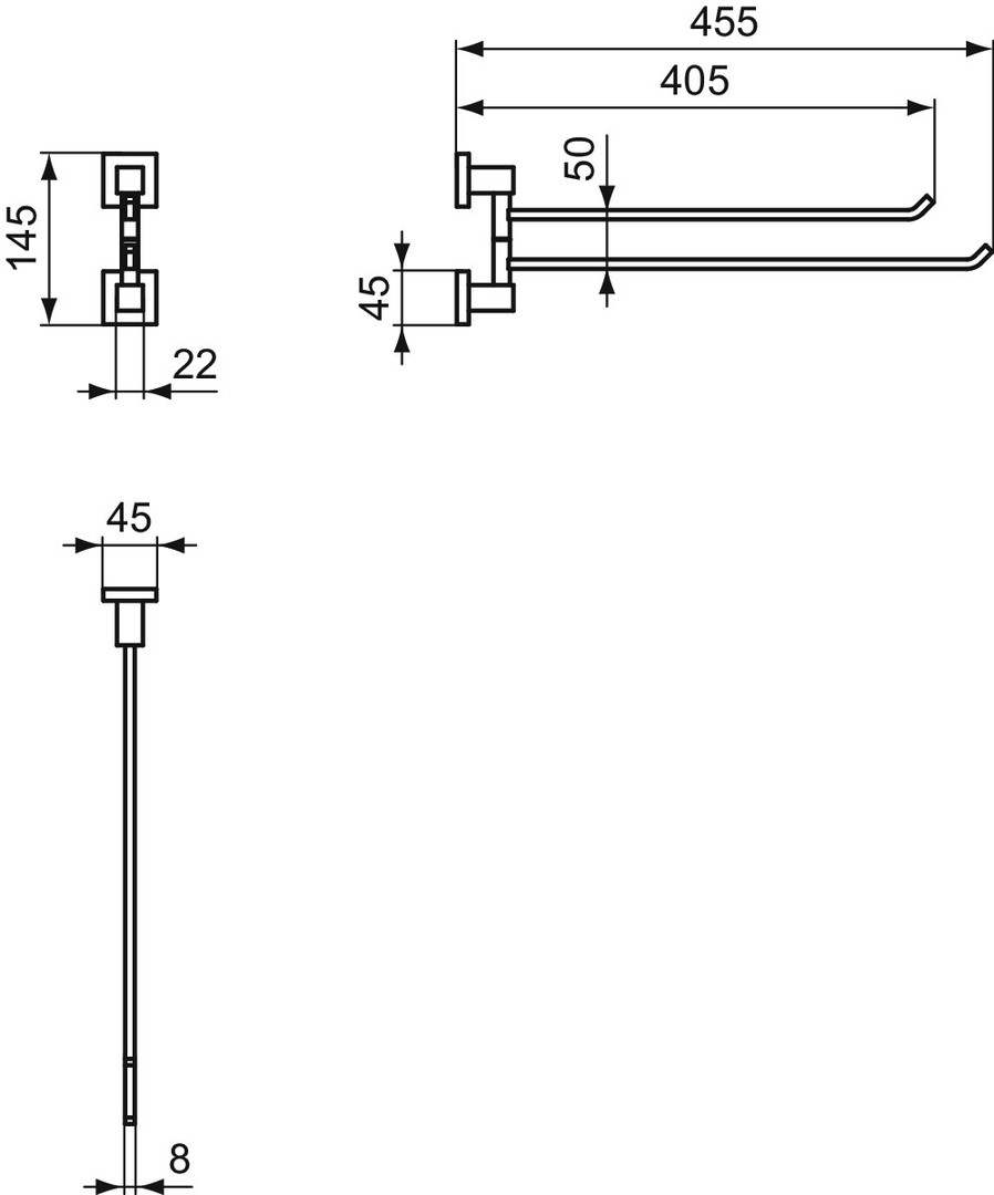 Ideal-Standard Handtuchhalter IOM Cube 2-armig, 45mm, mit Befestigungssatz, verchromt