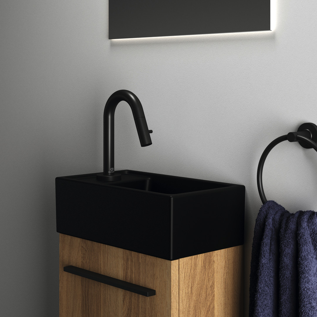 Ideal-Standard Handwaschbeckenunterschrank i.life S 1 Tür, Anschlag rechts oder links, 35,4 x 20,2 x 55,5 cm, Eiche natur